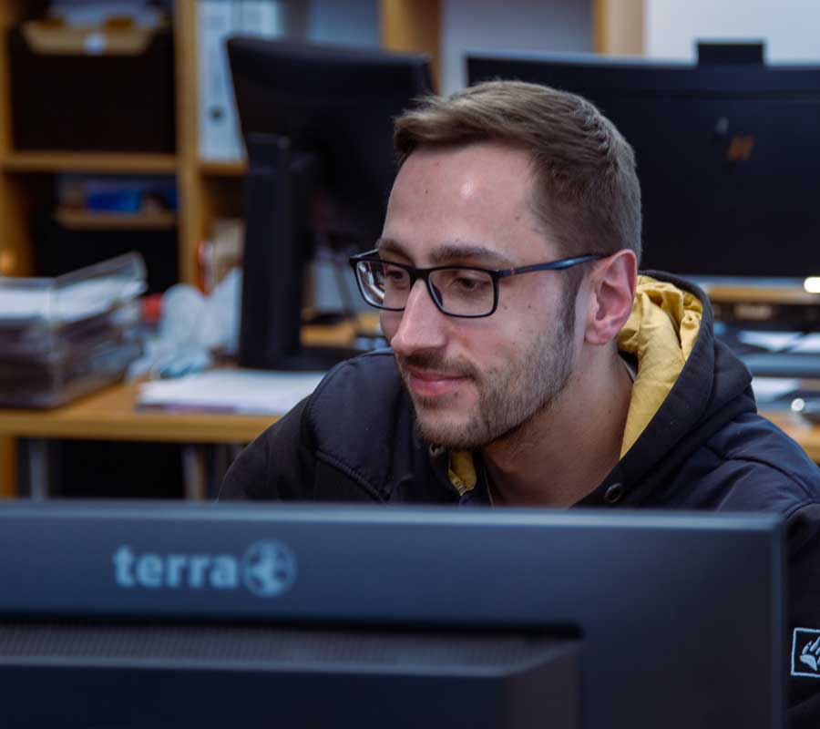 Marvin: Es gibt hier viel zu tun – genau so habe ich’s mir gewünscht. Mein alter Arbeitgeber war kleiner; für den neuen Job habe ich mir ein etwas größeres Unternehmen mit mehr Kollegen gewünscht – familiär sollte es trotzdem sein. Das Team hat mich hier gut aufgenommen, und ich habe schnell mitgekriegt, wie die Kollegen und Kunden so ticken. Um Prozesse, Systeme und Kunden kennenzulernen, saß ich zu Beginn im Helpdesk. Eingearbeitet wurde ich vom technischen Leiter und meinen Kollegen aus der Systemintegration. Das war viel Input in kurzer Zeit, aber so mag ich es. Ich habe viel gelernt und konnte so schnell eigene Kunden übernehmen. Im Januar hatte ich dann das erste Mal das Gefühl, so richtig angekommen zu sein. Jeder Kunde, jedes System und jeder Ablauf bringen Besonderheiten mit sich, in die man sich immer wieder neu ein denken muss. Diese Herausforderung mag ich!